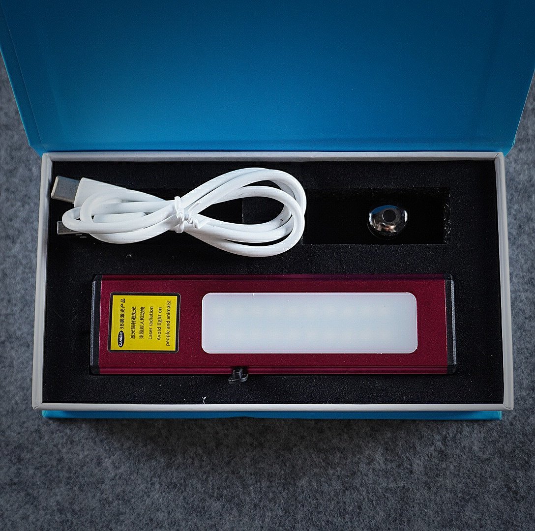 The blue light is visible even in daylight, making it perfect for outdoor presentations.